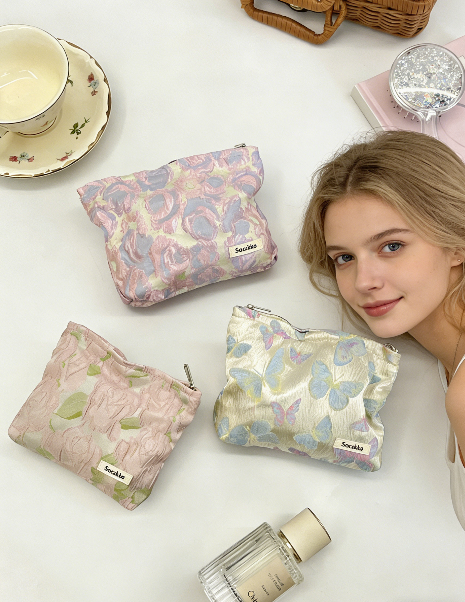 Cartoon Quilted Makeup Bag Mini Cosmetic Pouch Cute Padded Organizer Coin Purse Travel Storage Bag